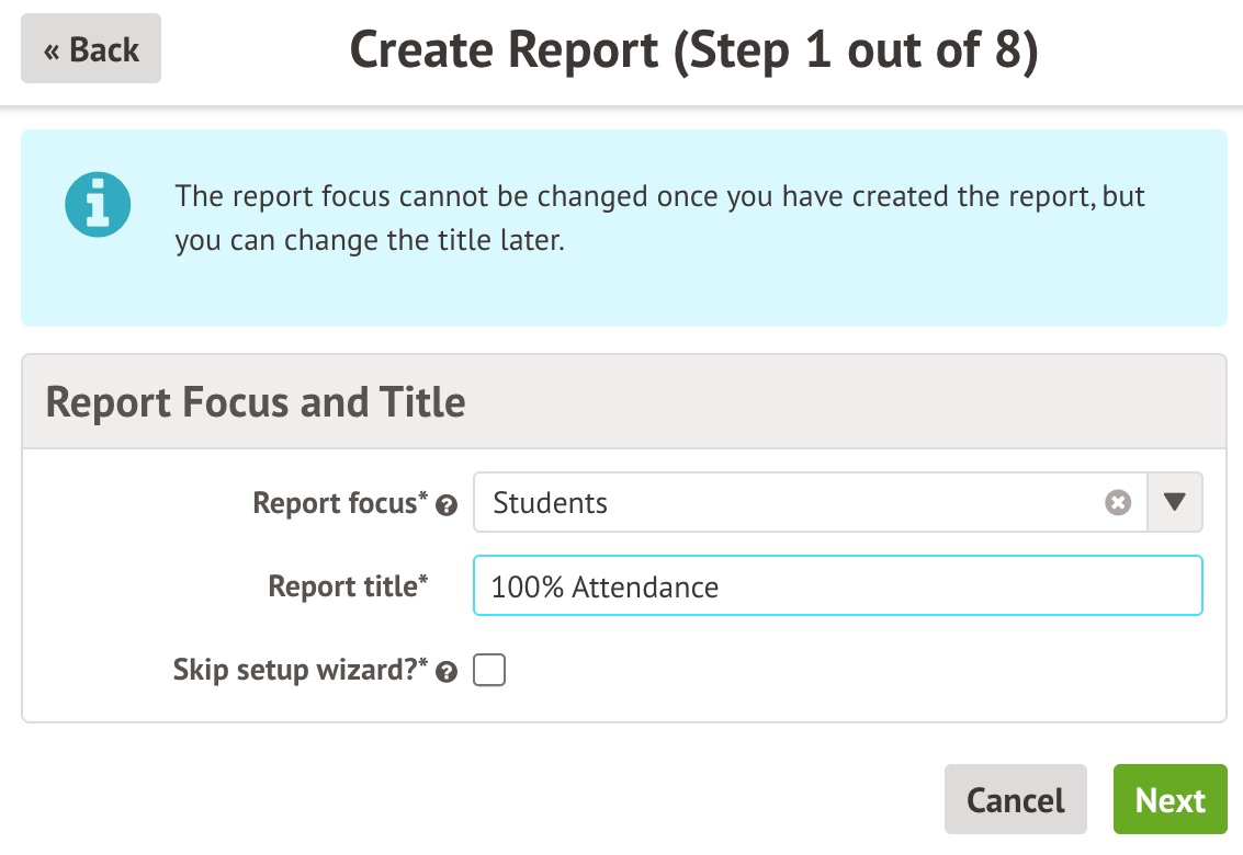Add a Title to your report and leave the Report Focus on Students.