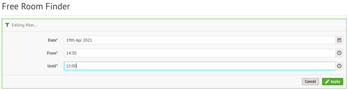 Your event will then show in the room calendar and this room will no longer appear as free on the Free Room Finder page for the period booked.