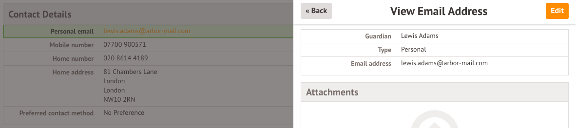 You may need to remove contact details for a guardian, for example, if the email address is also being used on another user's profile.