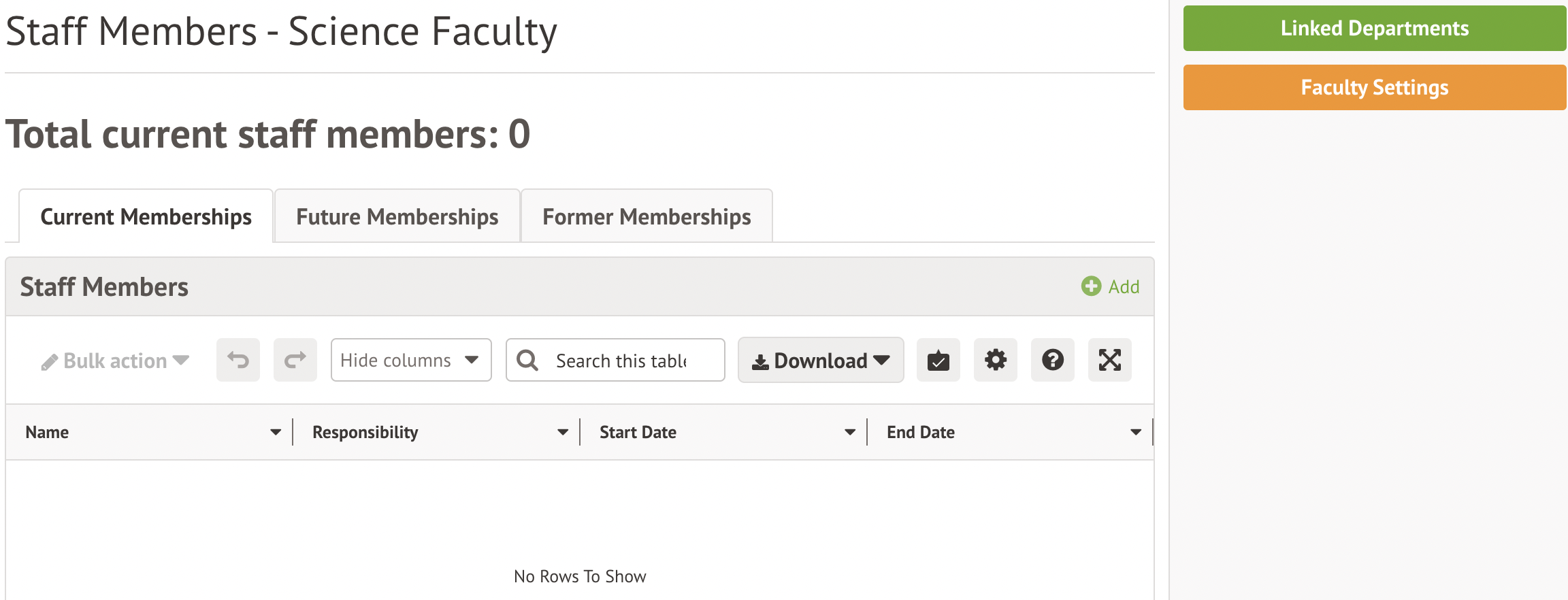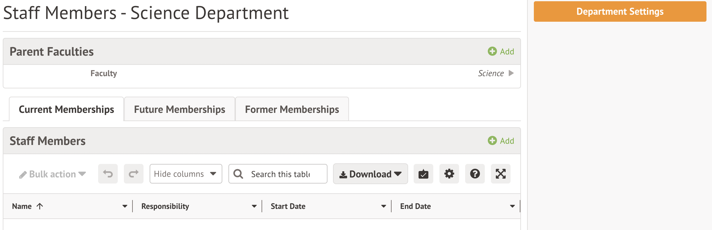 - Start Date: When the staff member joined the faculty