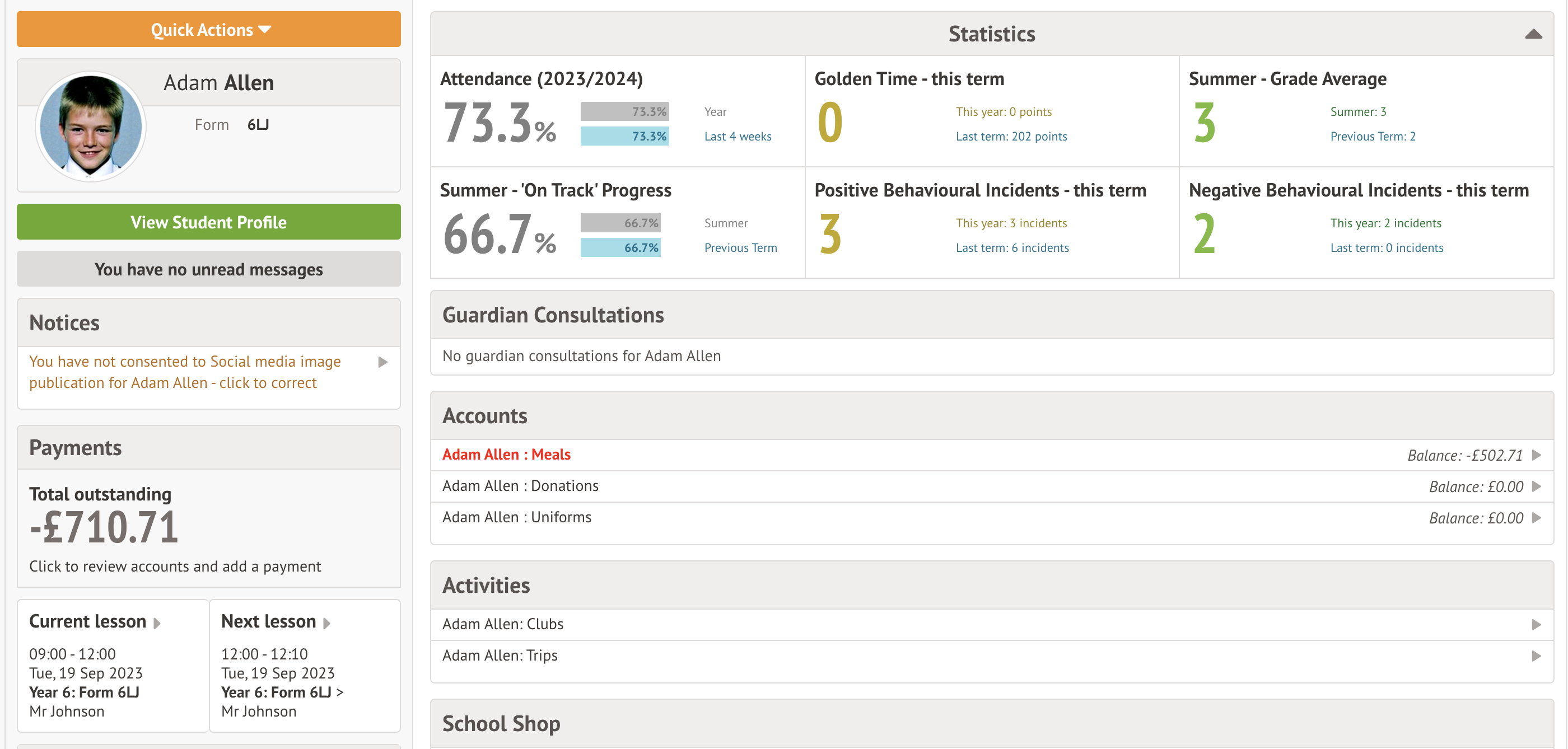 • School shop and Payments - Parents can top up their accounts and purchase School Shop items.