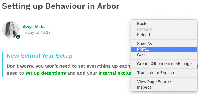 To print one of our articles, find the article you're looking for and open all the expandable menus. If you don't do this first, you'll just print the menu heading instead of the content within it.