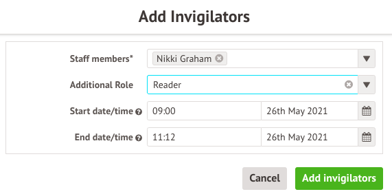 You will need to assign the role that most closely matches the invigilator's main duties.