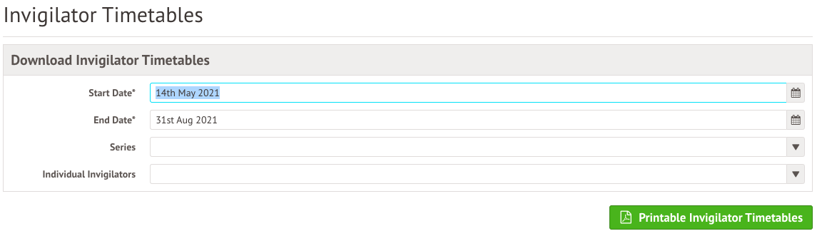In Scheduling > Invigilator Timetables, you can download Invigilator timetables.