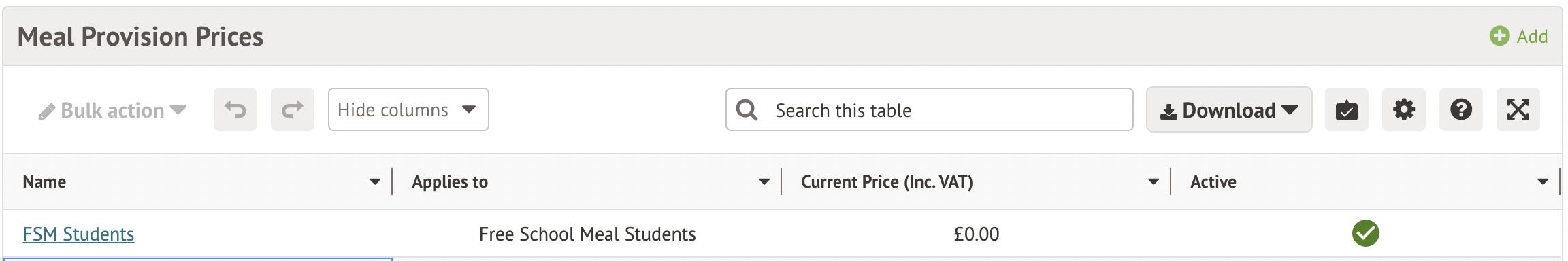- If you doo see a +Add button, add £0 prices using the instructions in the previous section (We have Payments, but we don't want to charge for meals).