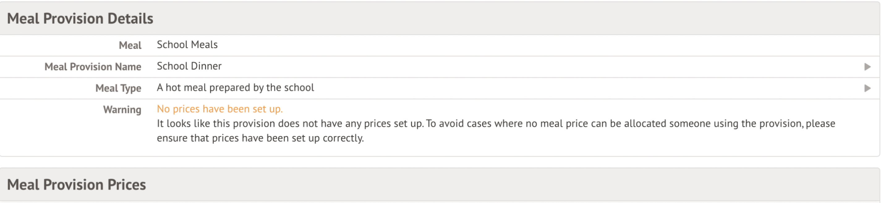 To ensure the meal provisions you have set up can be selected for meal choices, you will still need to create a price.