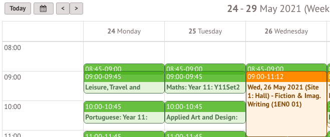 Once exams have been scheduled and the student has been allocated a seat for the exam, the exam will also appear in the student's calendar.