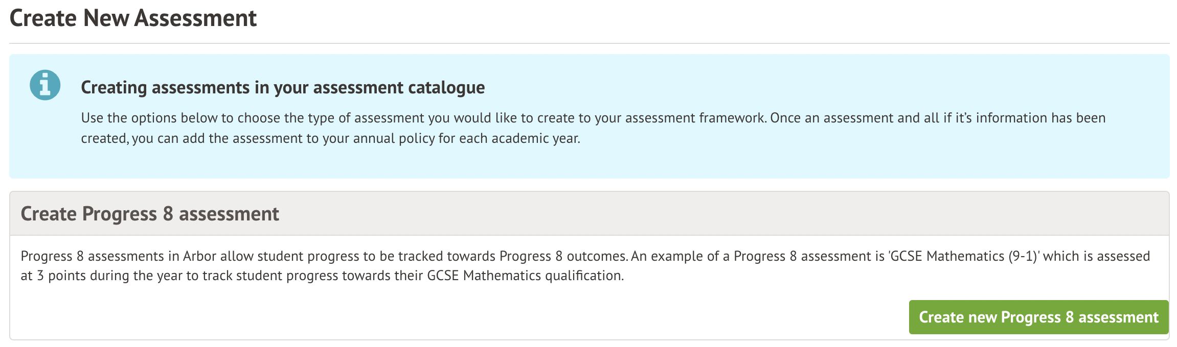 Select to create a new Progress 8 assessment.