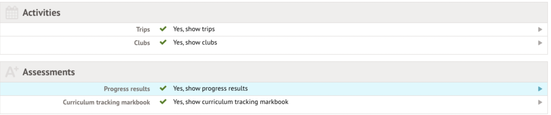 If you don't want to make all marks visible, you can choose only to share certain marks on report cards. You can send report cards to parents and students by sending them an email, or by sending it through the Parent Portal or Student Portal.