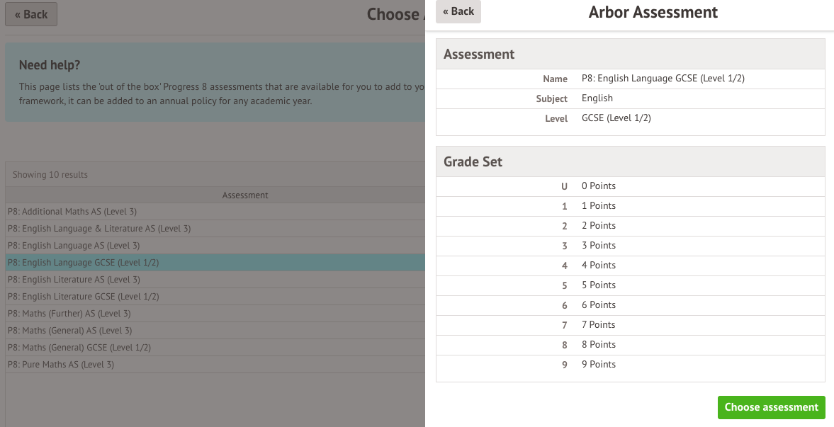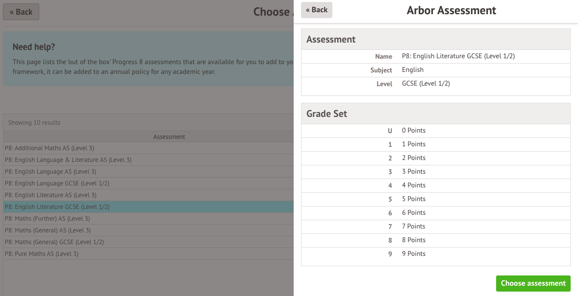 Select the English Literature assessment. Click the Choose assessment button in the slide over.