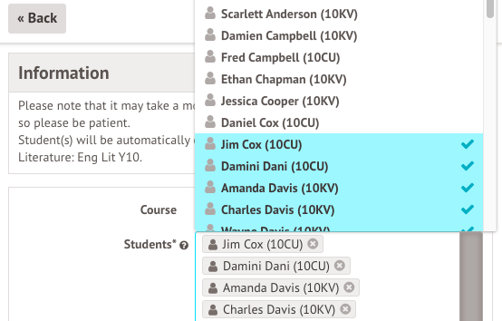Select the students to add. Top Tip: Type in the year group number to select from only students in that year group.