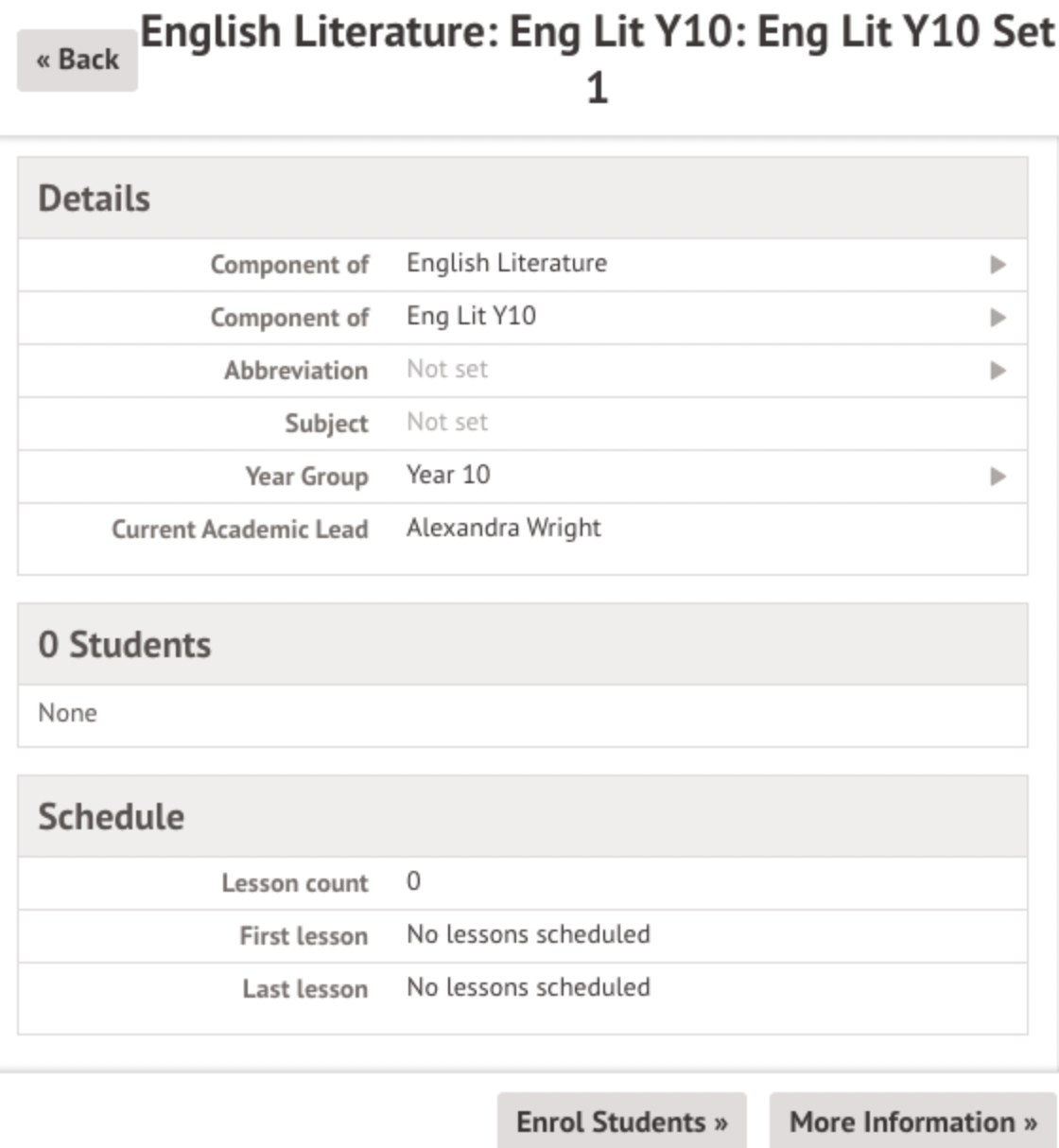 Next, you'll need to enrol the students into the same classes for English Literature as they are in for your main English class. The easiest way to manage this will depend on whether you use Teaching Groups at your school already to enrol students into classes.