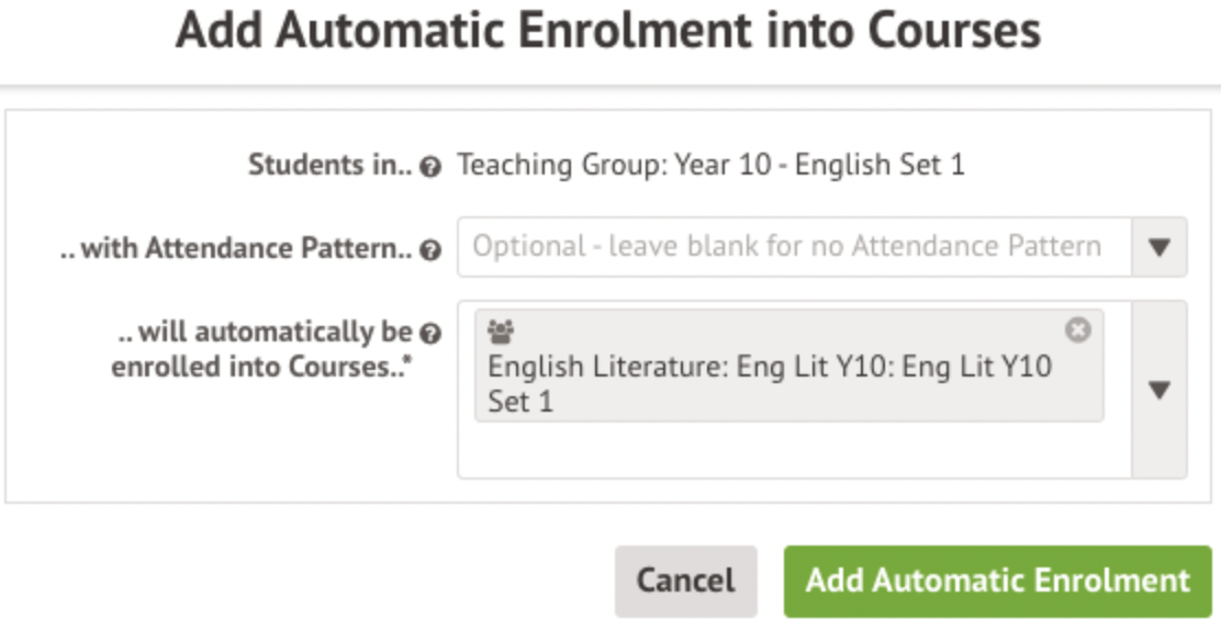 Click +Add in the Automatic Enrolments into Courses to select your new English Literature course.