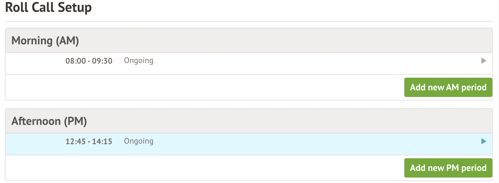 To add a new Roll Call Period, click on either Add new AM Period or Add new PM Period.