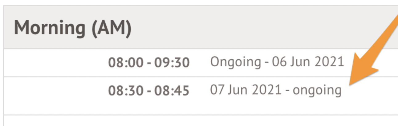 Once you've completed these steps, you'll then be able to see the new Roll Call Period in place. Any previously ongoing roll call times will be automatically ended on the last day before the new roll call times begin. Arbor will automatically start using the new period once the effective date arrives.