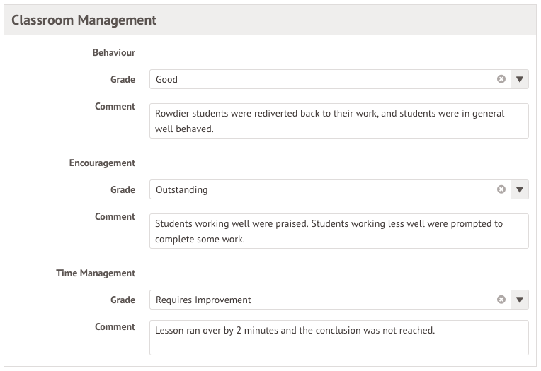Arbor's Observations feature allows you to record and act on observation outcomes for a variety of different types of observations. You have the freedom to define the Observation Types (such as a formal lesson observation, a learning walk or workbook scrutiny) and Grade Sets.