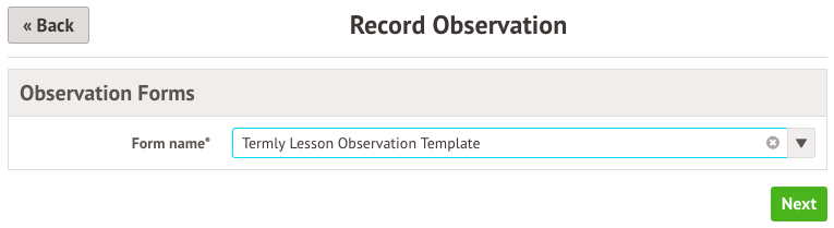 On the next page, choose which Template to use, then click Next. If you cannot select an observation form, this means no forms have been set up.