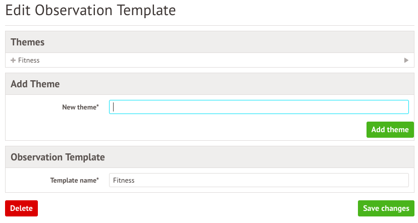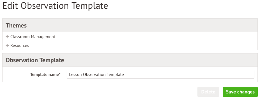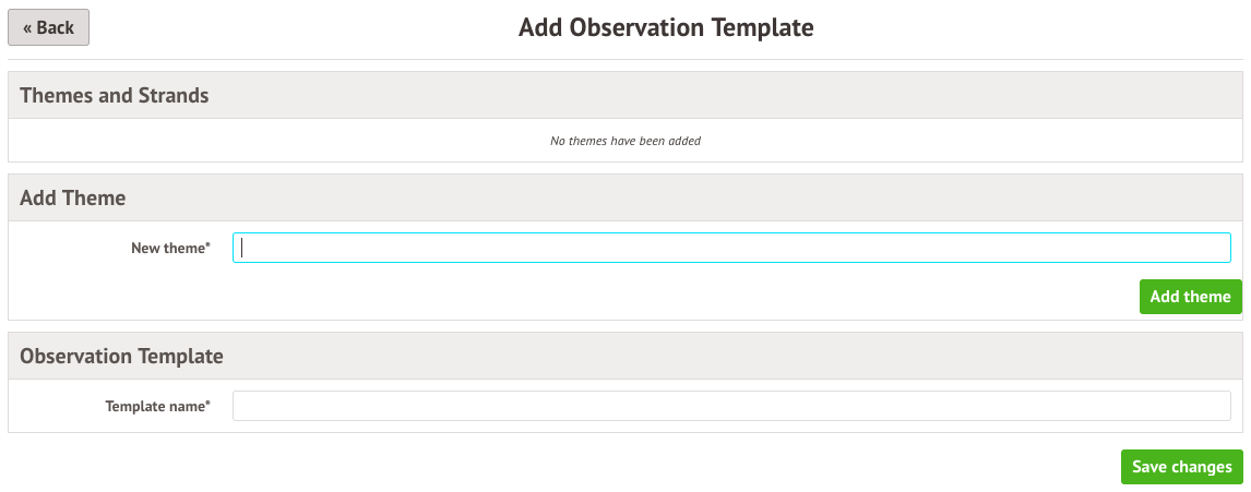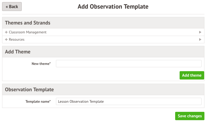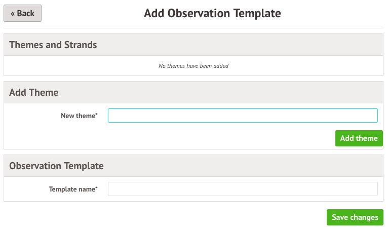 You can then add themes and strands and decide on the name of your Observation Template. A theme is a broad area that will be observed, and strands show how the theme will be observed.