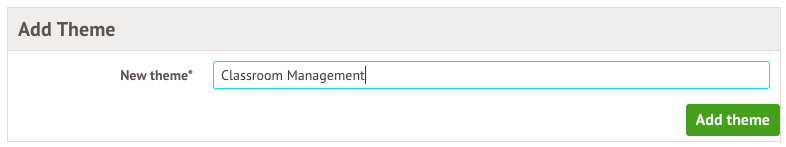 To add a theme, type your theme name into the New theme box, then click the green Add theme button.