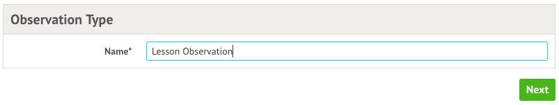 Next, decide on a name for your Observation Type. then click the green Next button.