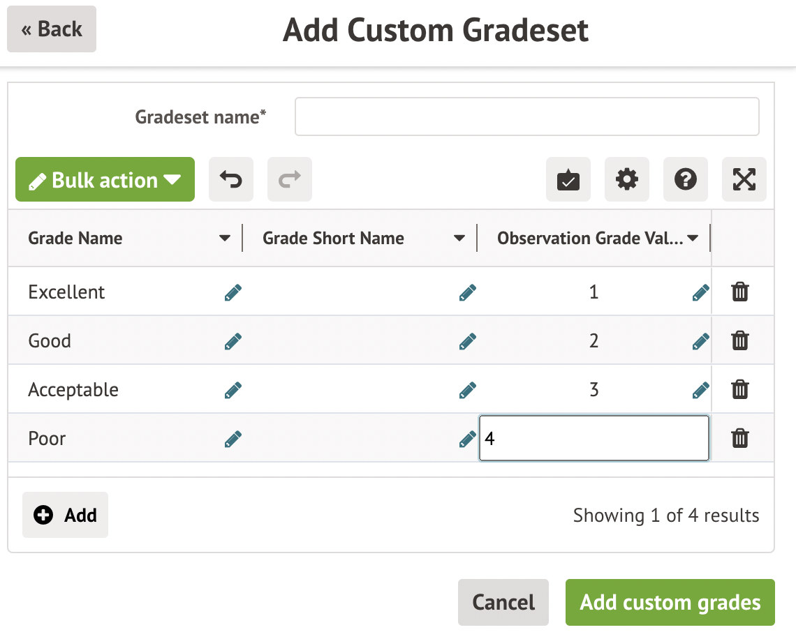 Please note, you can only edit or delete a Grade Set if no observations have been recorded using the Grade Set.