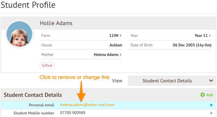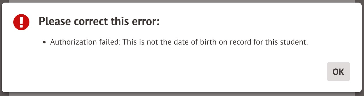 - Confirm the date of birth is correct on the student's profile and matches the one the guardian is entering. You can adjust a student's date of birth from the main page of their profile.