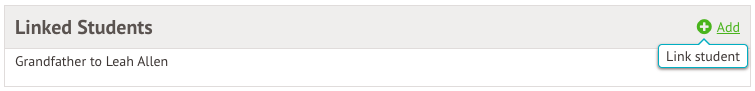 Link the child to the guardian by clicking +Add in the Linked Students section on the guardian profile.