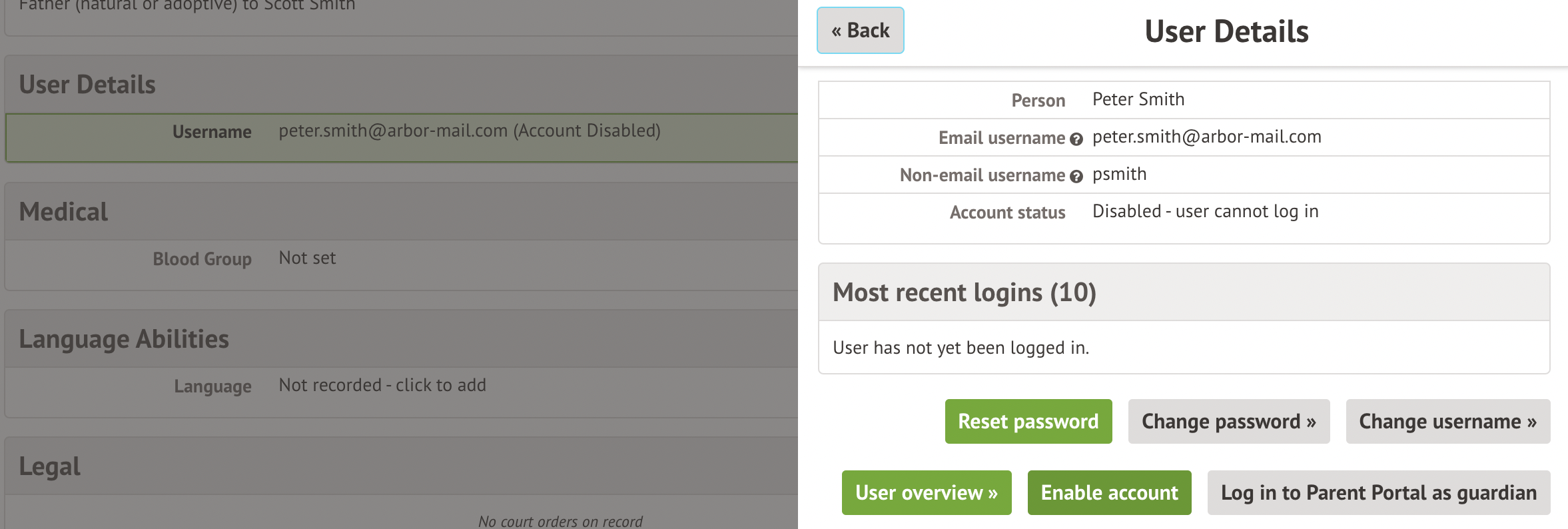 - Ensure that an email address is recorded on the guardian's profile. An email address is required in order to log in