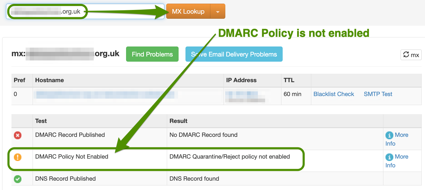 If you aren't sure whether you’ve set up a DMARC policy, use MxToolbox to check: