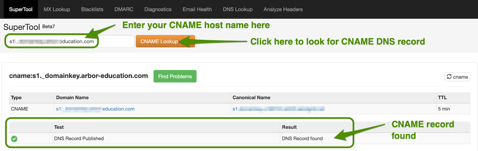 To check each of the CNAME records, use ‘CNAME Lookup’. See below: