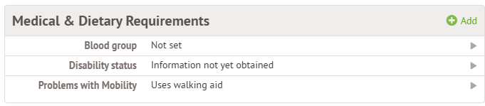 - Impairment details like category, name, whether it affects working ability and the date linked to the record