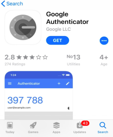 For iOS, open the App Store and search for ‘Google Authenticator’. Select the Google Authenticator app and click Get.