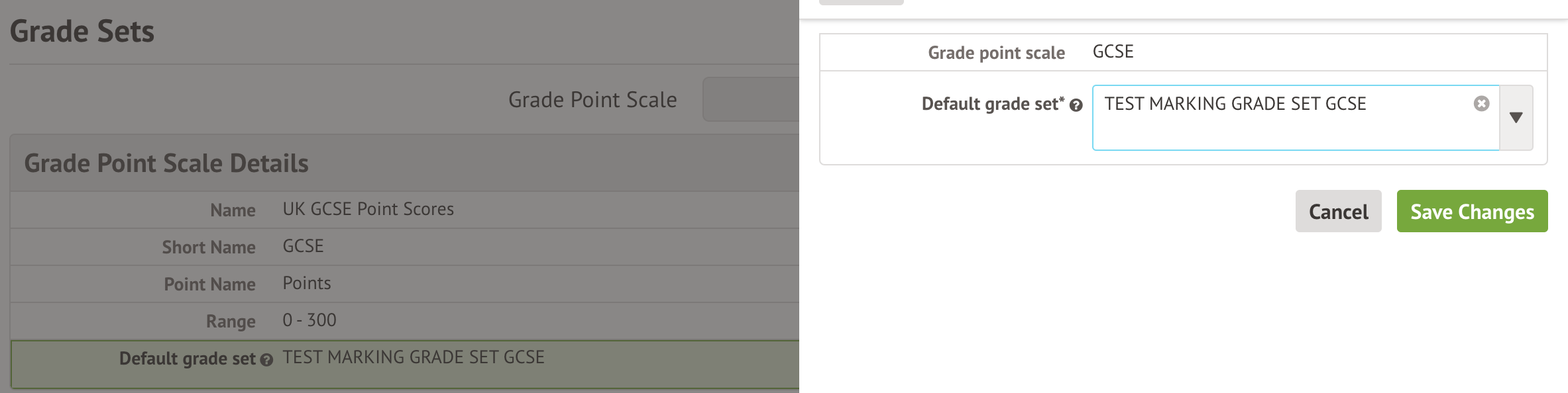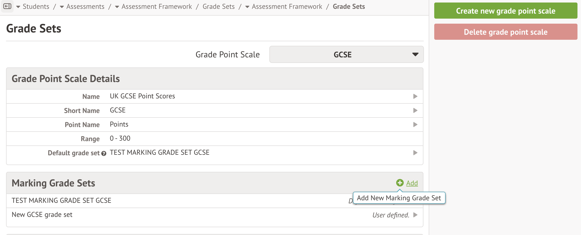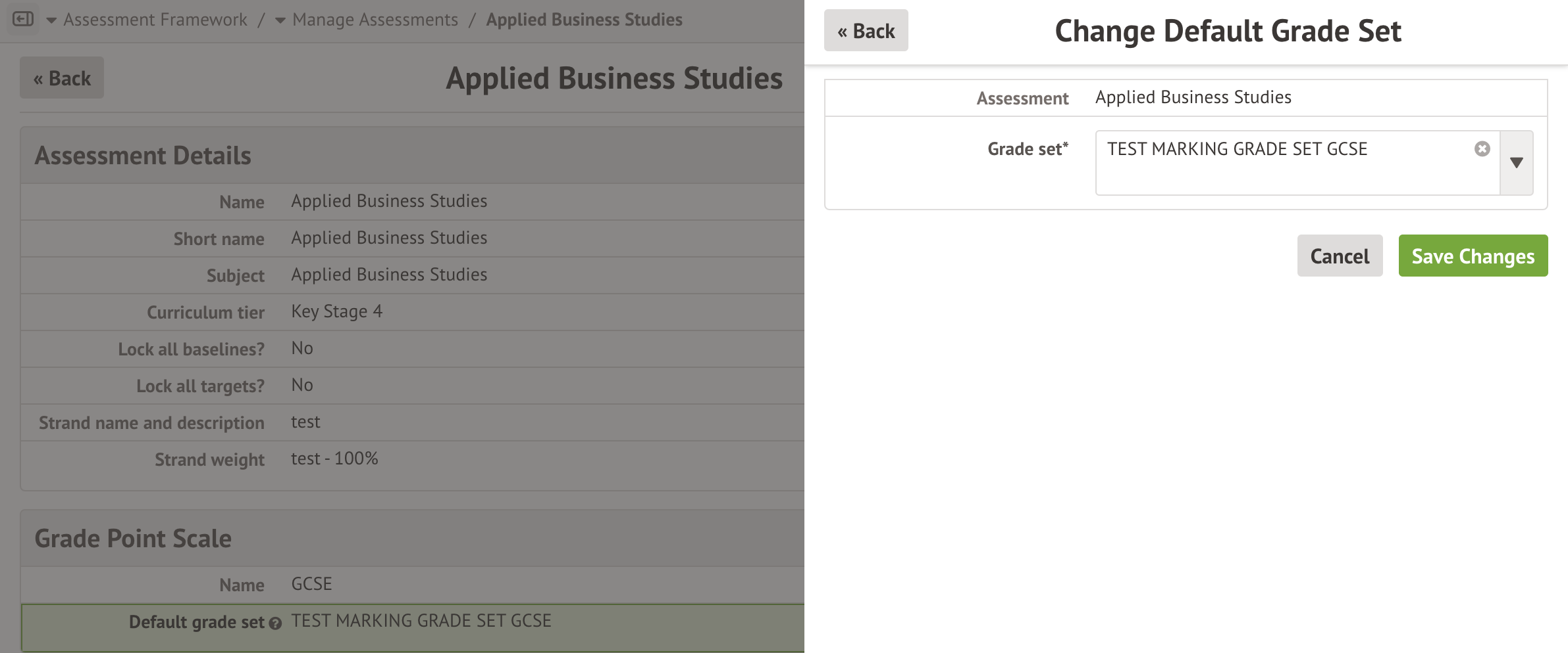 - You can change the default grade set for any future assessments you set up using that grade set from the Students > Assessment > Assessment Framework > Grade sets page.