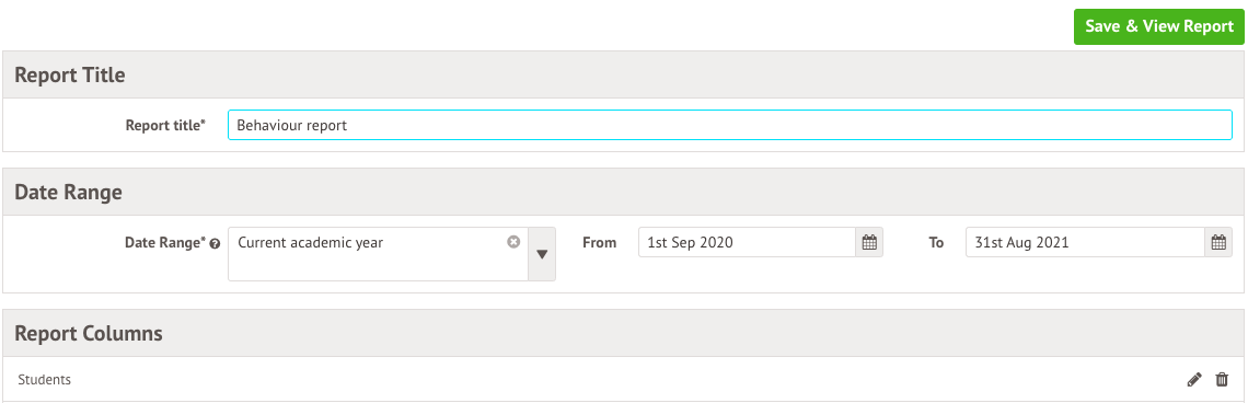 Remember to click Save & View Report when you're ready to test whether or not you've edited the dates sufficiently.