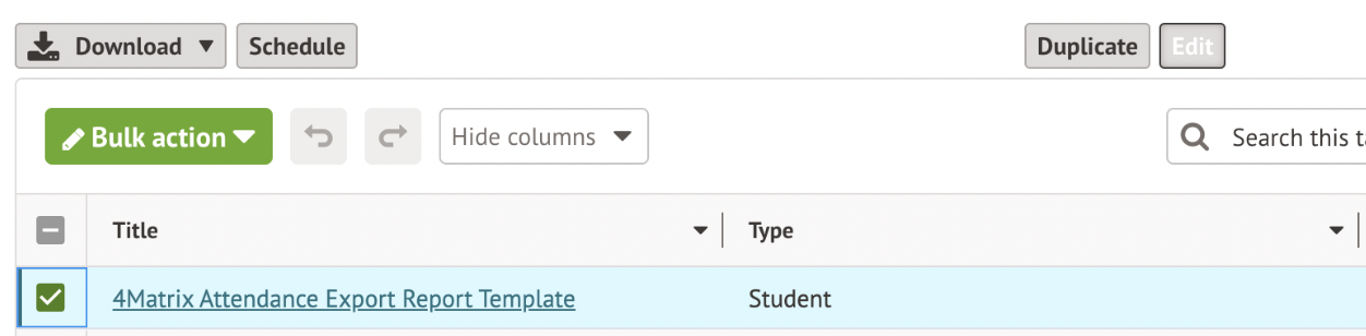Next, click the grey Download button at the top of the list, and select the file type you want to download the report as in the drop-down that appears.