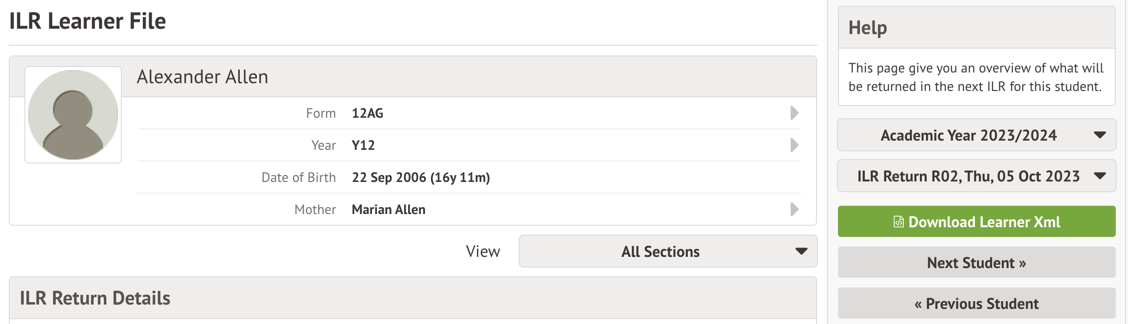 Go to the student's profile, and select ILR Learner File from the left-hand menu.