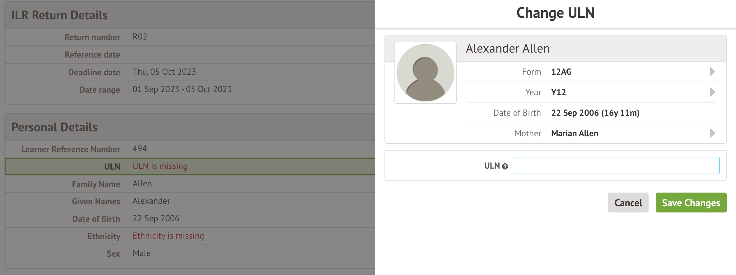 On the main ILR Return page, you will be shown a list of the errors. Click the error to add the required information.