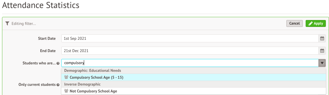 On many of our reporting pages, you can choose to view the data for students who belong to different demographic groups - one of them is students who are not compulsory school age.