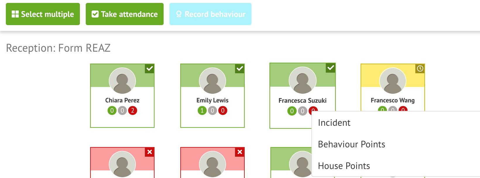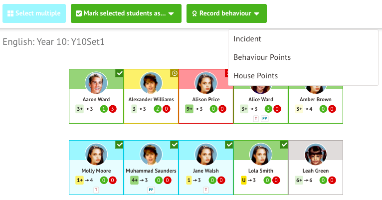 - Click the students you wish to record behaviour incidents/point awards against to select them