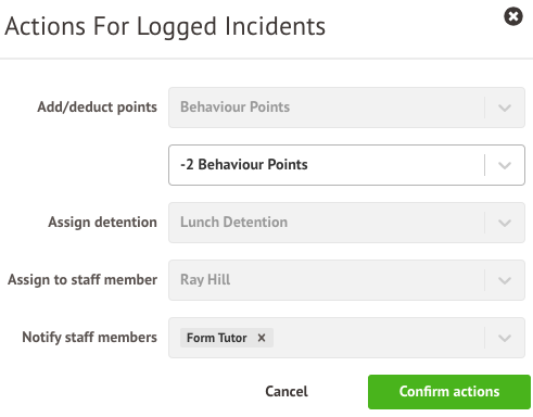 The actions available and who is assigned will depend on your school's behaviour setup.