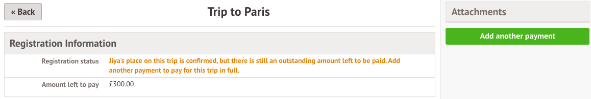 - The full amount has not been paid, but the trip has Voluntary Contribution enabled