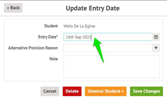 Now change the entry date to the date that the student will actually start attending your school and click Save Changes.