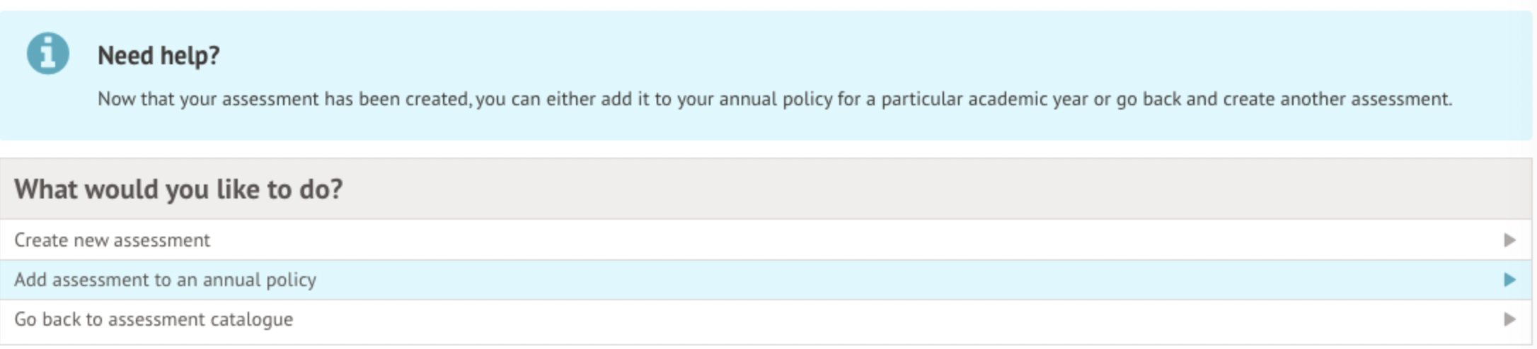 When adding your assessment, you can either: