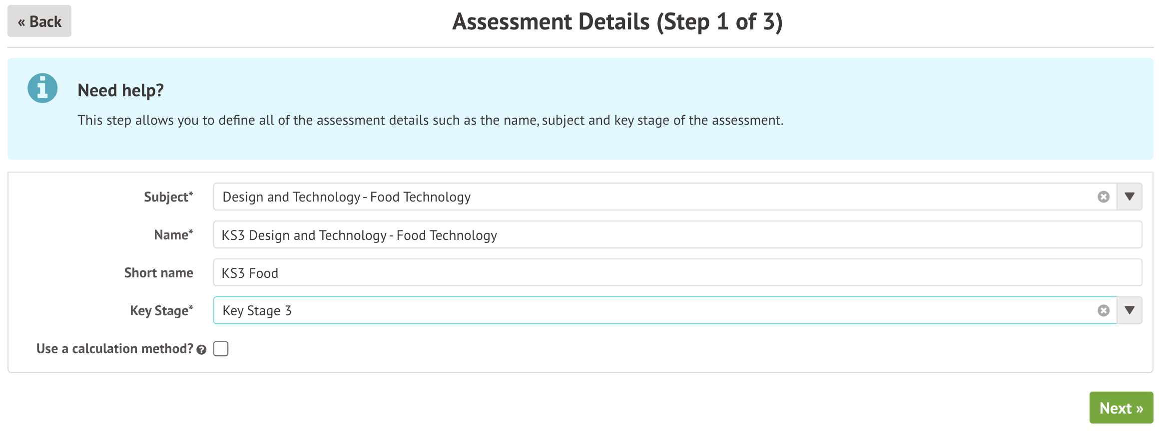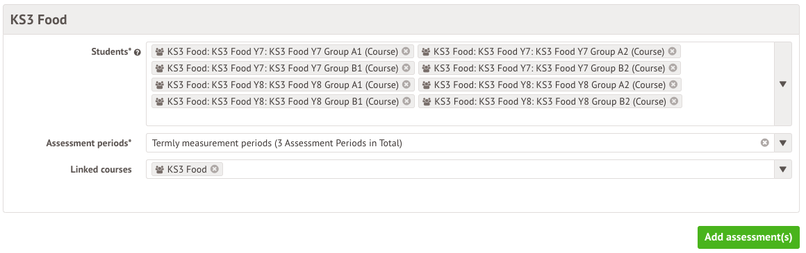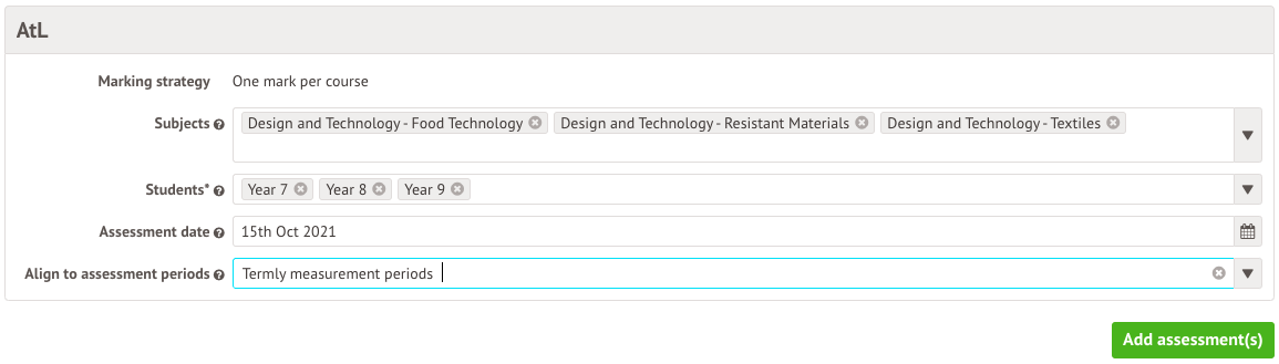 - Assessment date and assessment periods - Select the same assessment periods as your Design and Technology assessments.