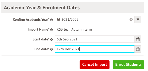 - This is because the enrolment dates need to be exact into the lessons, so students show up in the right registers and right assessment marksheets on the right dates.
