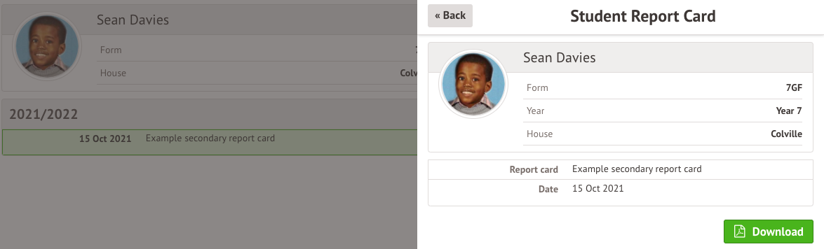 For example, on the Parent Portal guardians can click the View Student Profile button, and go to the Report Cards section to download the Report Card.