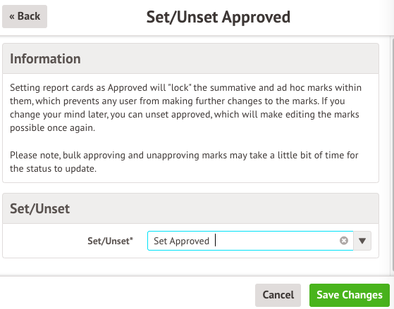 When creating Report Cards, you'll see the option to mark a report card as approved. Marking Report Cards as approved: