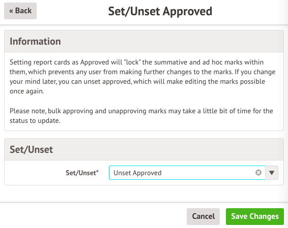 The marks will then unlock, and report cards will be marked as not approved in just a few minutes.