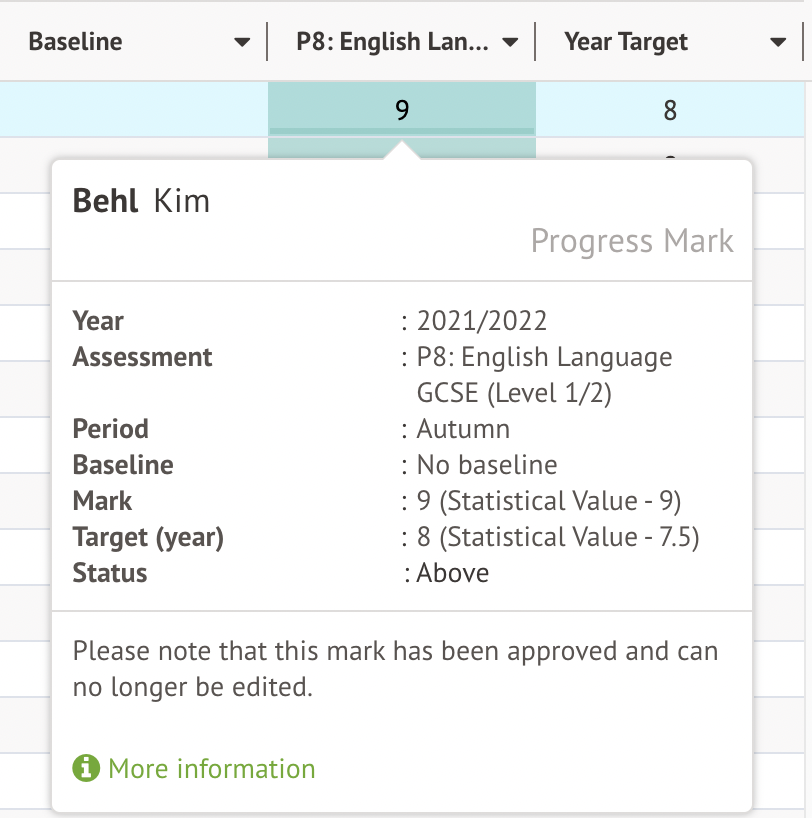 Top Tip: If the Date range applied in the Attainment tab of your Report Card spans two assessment periods, only the most recent marks will be locked.