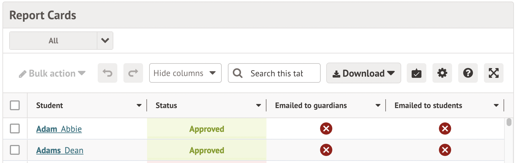 This feature is optional for schools to use. Even if the report card has not been marked as approved, you can still download it or share it with guardians once you are satisfied with the data contained within.